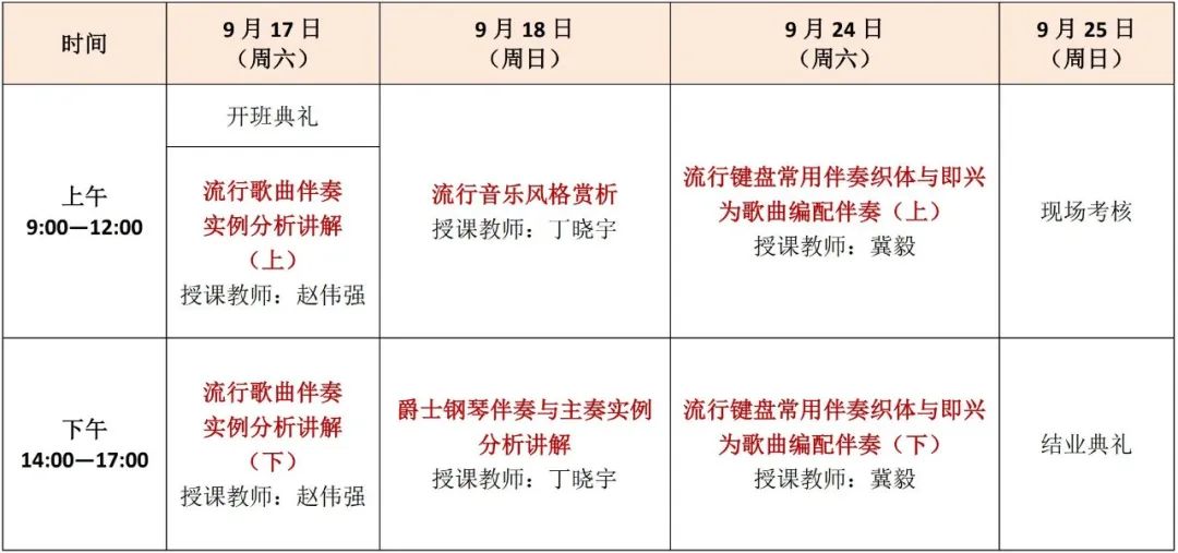 浙江音乐学院社会音乐教育流行钢琴专业培训师标准级研修班课程表