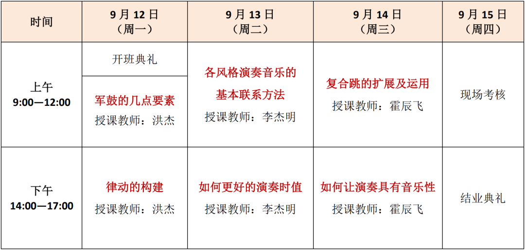 浙江音乐学院社会音乐教育爵士鼓专业培训师标准级研修班课程表
