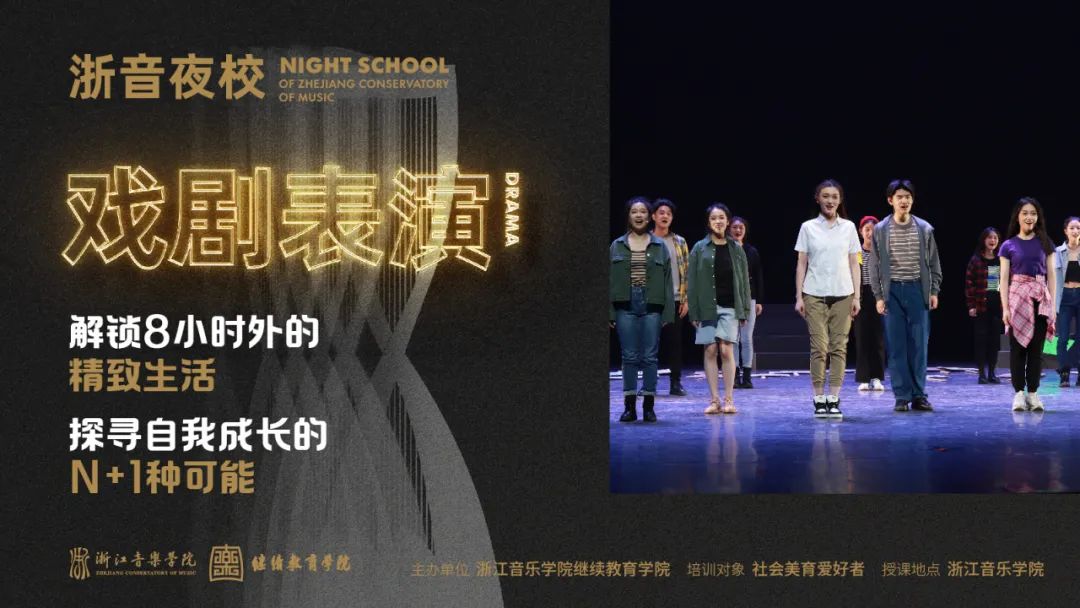 浙音夜校依托浙江音乐学院深厚的学科背景、专业的师资力量、优质的服务保障团队,通过分层次教学和个性化指导,结合学员实际需求,提供一系列吸引人、有趣味、有品位的成人社会美育课程,让每一位艺术爱好者都能在适合自己的领域中成就自己,实现个人音乐梦想的“N+1”。