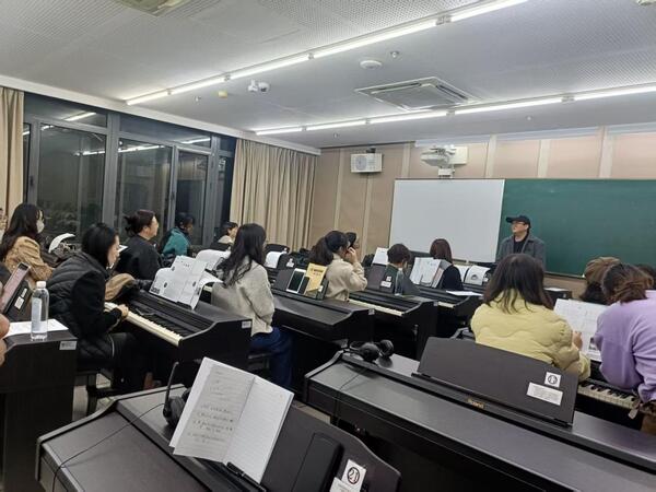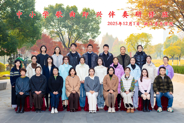 发布时间:2025-12-05为提升浙江省中小学音乐教师的歌曲即兴伴奏专业能力,夯实教学实践根基,近日,为期 5 天的中小学歌曲即兴伴奏研修班在我院顺利落幕。来自全省各地的中小学音乐教师齐聚一堂,通过系统授课、实践演练与经验交流,沉浸式提升专业素养,收获颇丰。