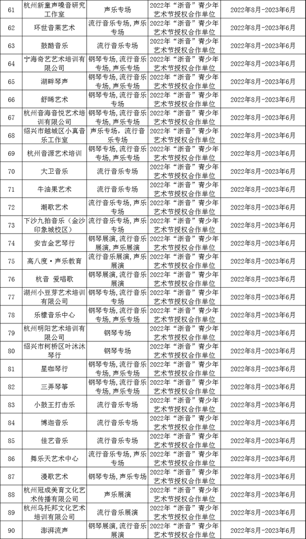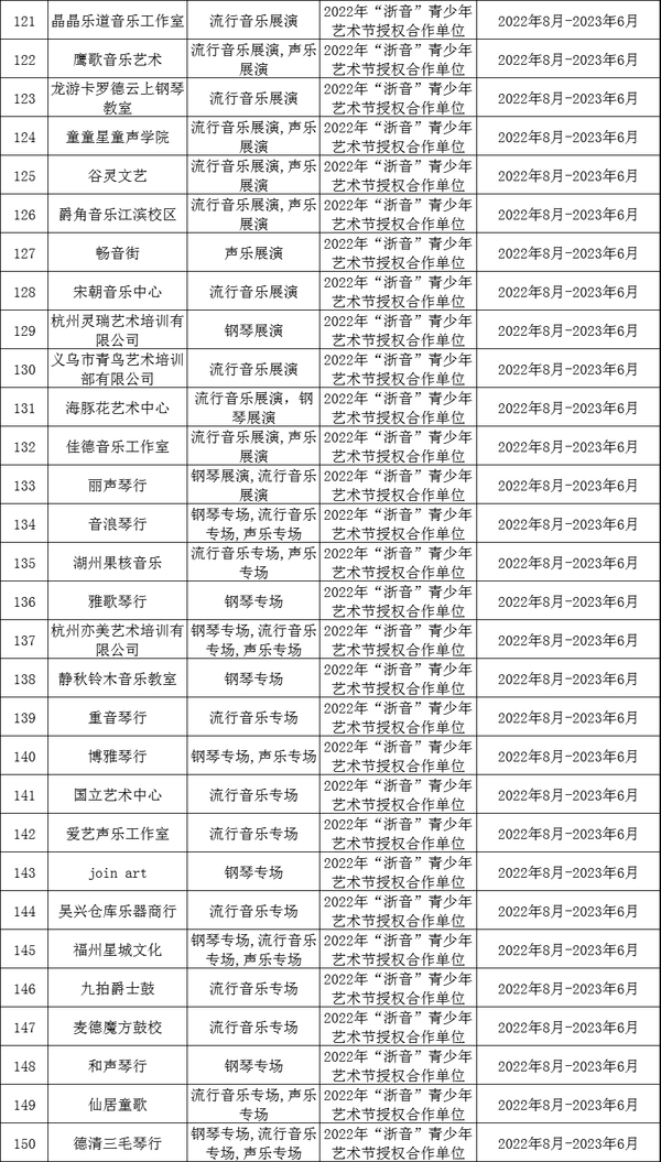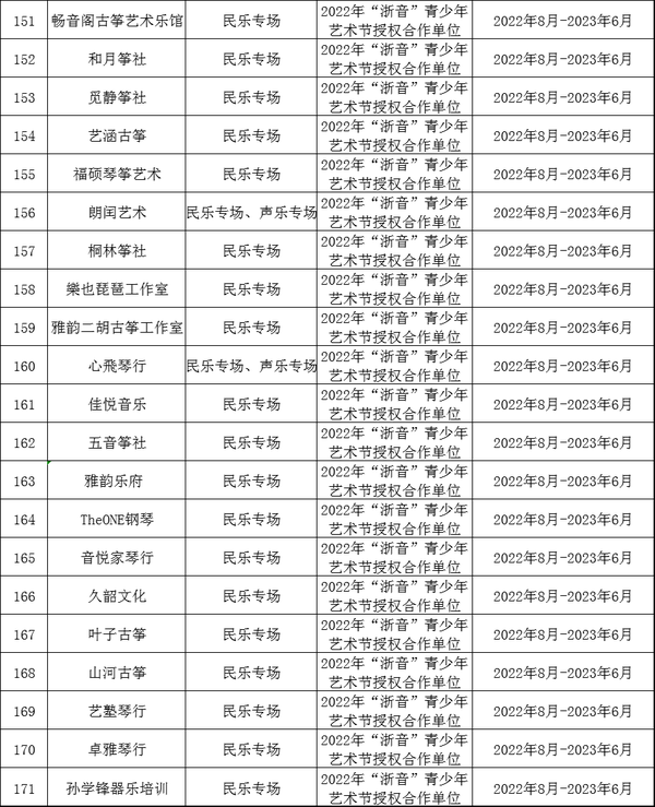 附件:“浙音”青少年艺术节展演授牌汇总表